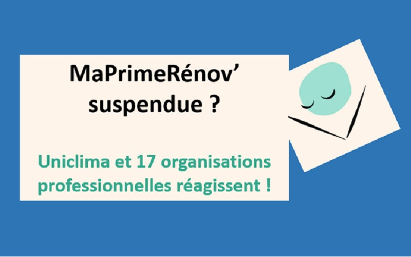 Avec 17 autres organisations professionnelles, Uniclima réclame un rendez-vous avec le Premier Ministre et le Ministre de l'Economie pour surseoir à la suspension annoncée de MaPrimeRénov', en particulier concernant les monogestes